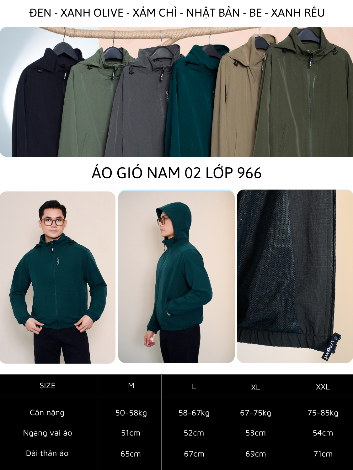Áo gió nam Laroma có full size cho hầu hết dáng người:
