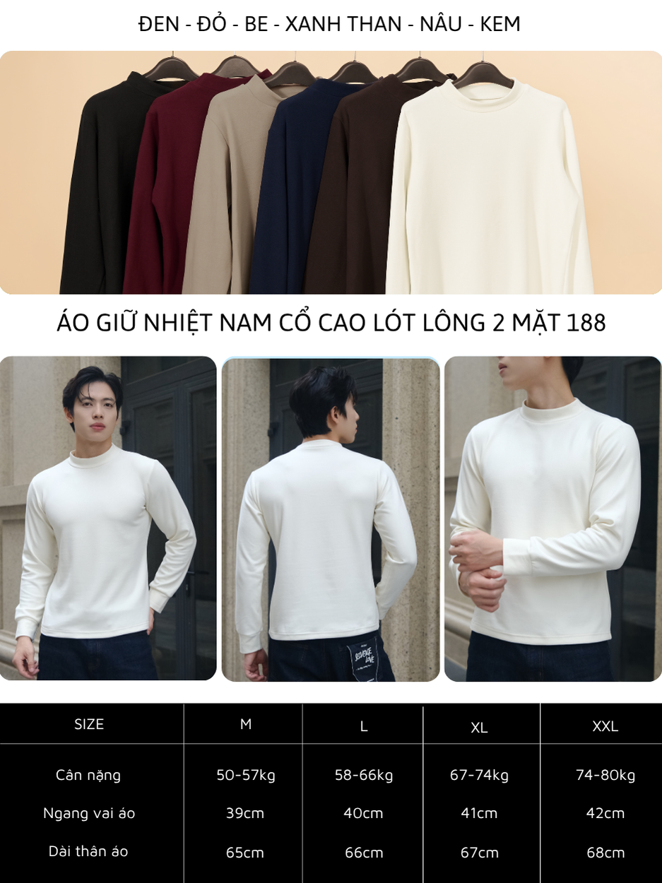 Tên sản phẩm: Áo Giữ Nhiệt Nam Cổ Cao Lót Lông 2 Mặt