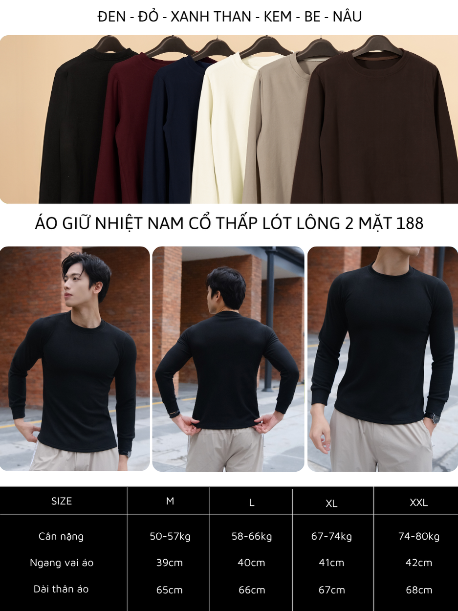 Tên sản phẩm: Áo Giữ Nhiệt Nam Cổ Thấp Lót Lông 2 Mặt