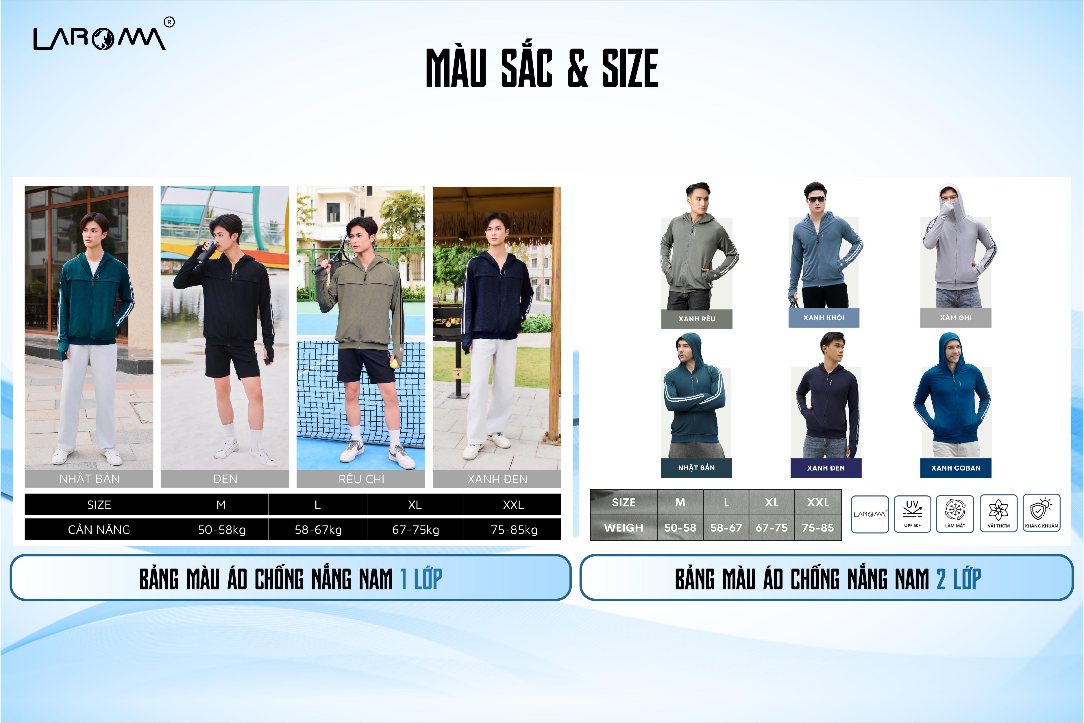 Bảng size áo chống nắng dành cho nam của Laroma