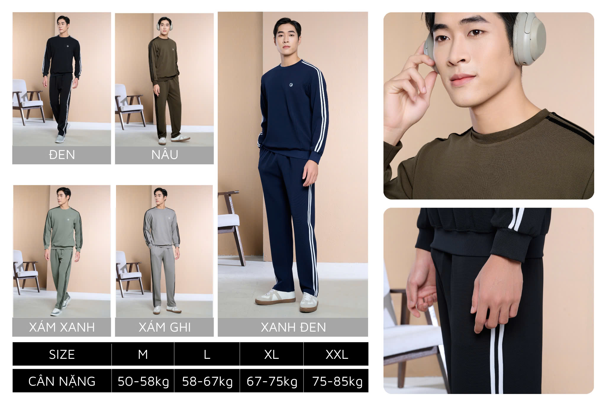 Bộ nỉ nam Laroma có full size cho hầu hết dáng người: