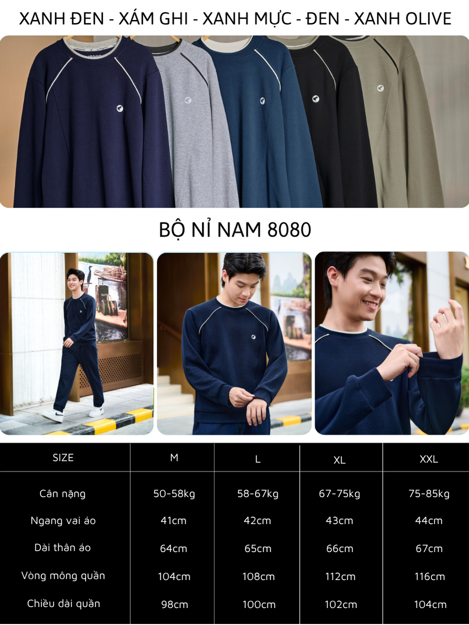 🌸THÔNG TIN CHI TIẾT SẢN PHẨM BỘ NỈ NAM 8080 LAROMA