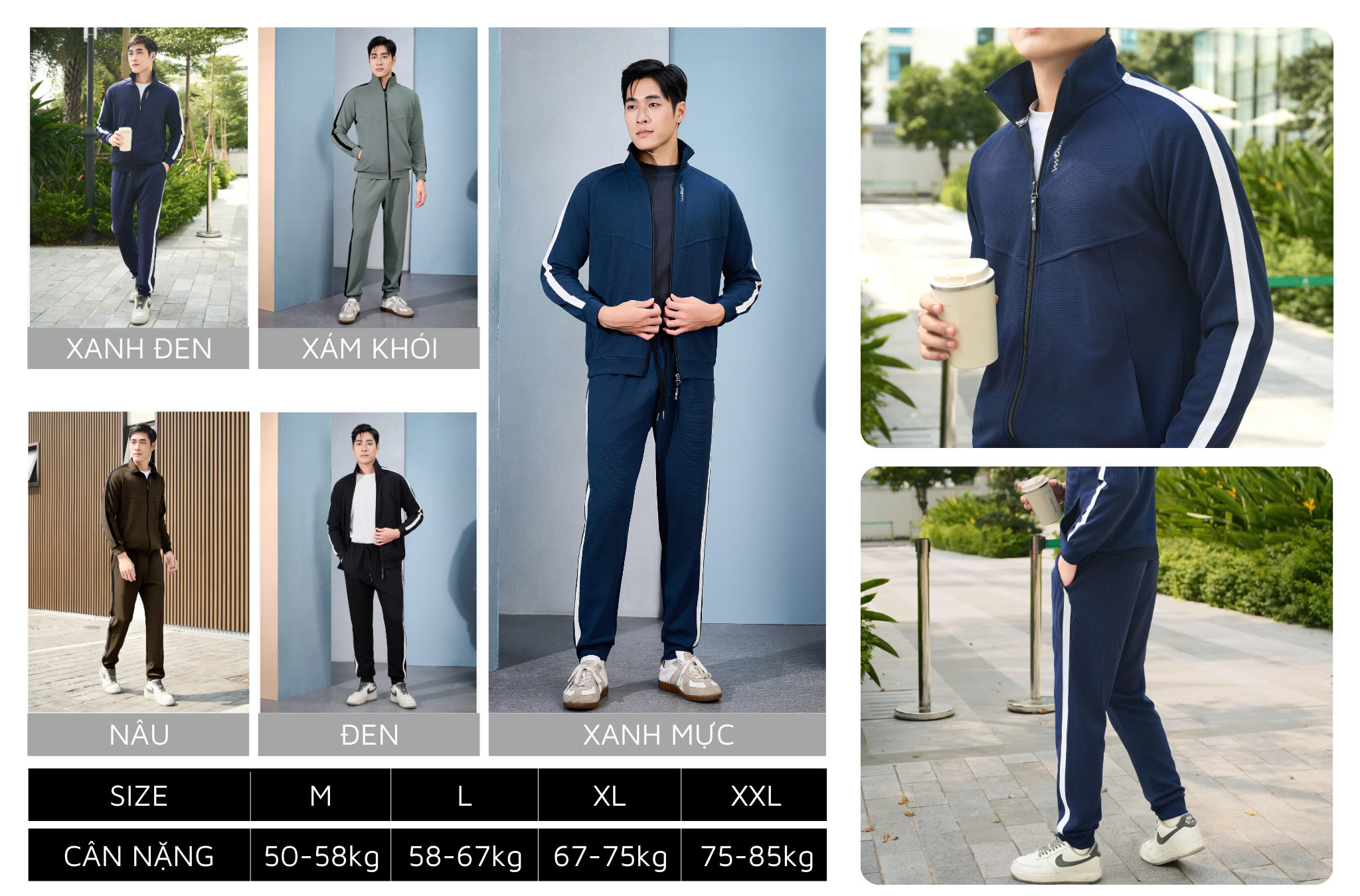 Bộ Nỉ Nam Khóa Kéo Sọc Đơn