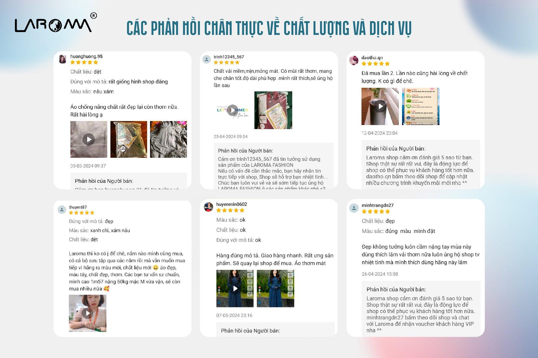 Khách hàng phản hồi về chất lượng vượt trội, tính đa dụng và tiện lợi, thời trang, chất lượng dịch vụ tốt là những điểm mạnh mà Laroma đang không ngừng phát huy. Dưới đây là 1 số phản hồi từ các khách hàng mà Laroma đã nhận được: