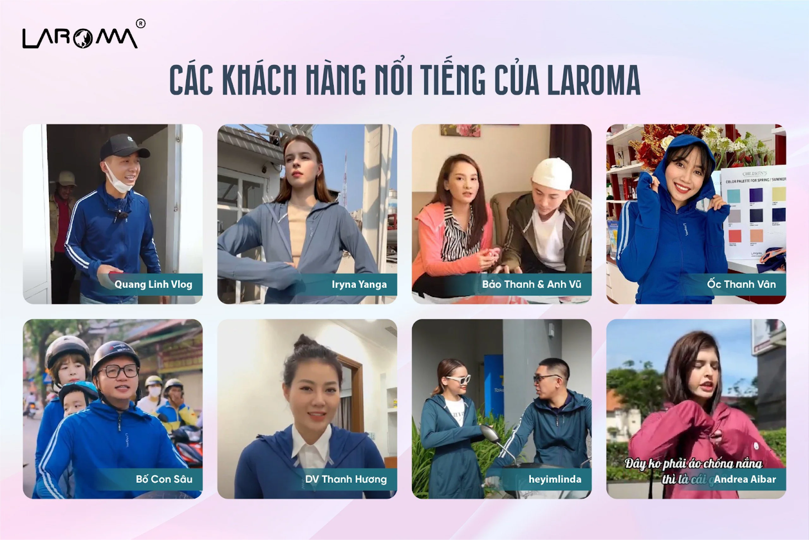 Rất nhiều khách hàng nổi tiếng đã tin dùng sản phẩm mũ trùm chống nắng Laroma, bao gồm:
