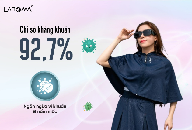 Nhờ công nghệ xử lý kháng khuẩn hiện đại, mũ trùm chống nắng Laroma có khả năng chống vi khuẩn lên đến 92,7%, ngăn ngừa vi khuẩn tiếp xúc với làn da, hạn chế mùi hôi do mồ hôi gây ra, giúp người dùng luôn cảm thấy sạch sẽ và thoải mái khi sử dụng.